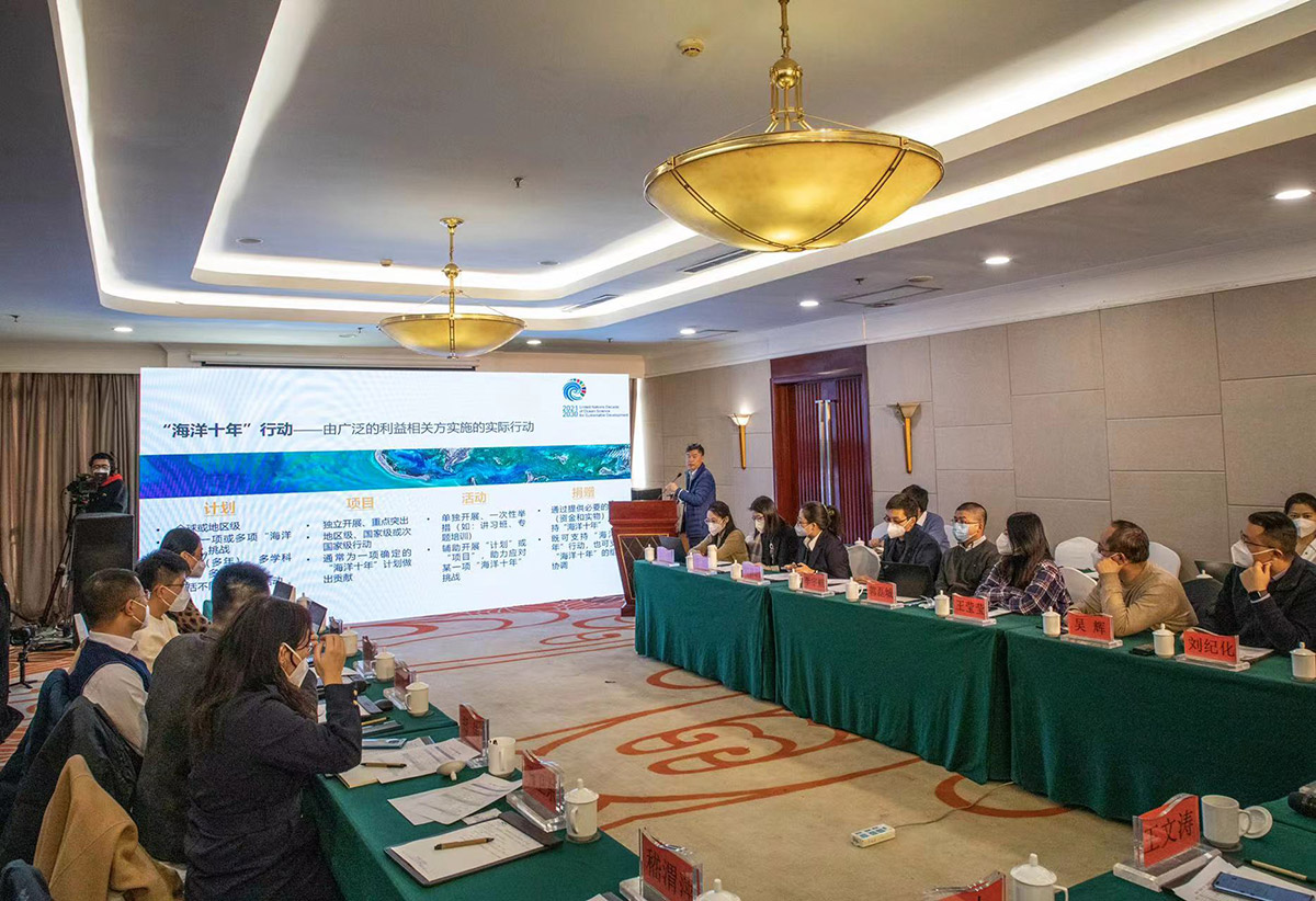 In order to strengthen communication and collaboration among all domestic organizations to participate in activities related to “United Nations Decade of Ocean Science for Sustainable Development (2021-2030)” (Ocean Decade), to fully support the work of the National Decade Committee, and jointly plan the blueprint for sustainable development of the ocean, on 12th December, 2022, the First Institute of Oceanography and the UN Decade Collaborative Centre on Ocean-Climate Nexus and Coordination Amongst Decade Implementing Partners in P. R. China (DCC-OCC) jointly organized the workshop on promoting the implementation of the Ocean Decade in China. Leaders, experts and scholars from more than 10 organizations, including the Administrative Center for China’s Agenda 21, Peking University, East China Normal University, Xiamen University, Shandong University, Sun Yat-sen University, University of Macau, the Second Institute of Oceanography, the National Satellite Ocean Application Service, the National Marine Data and Information Service and the National Marine Environmental Forecasting Center attended the meeting.