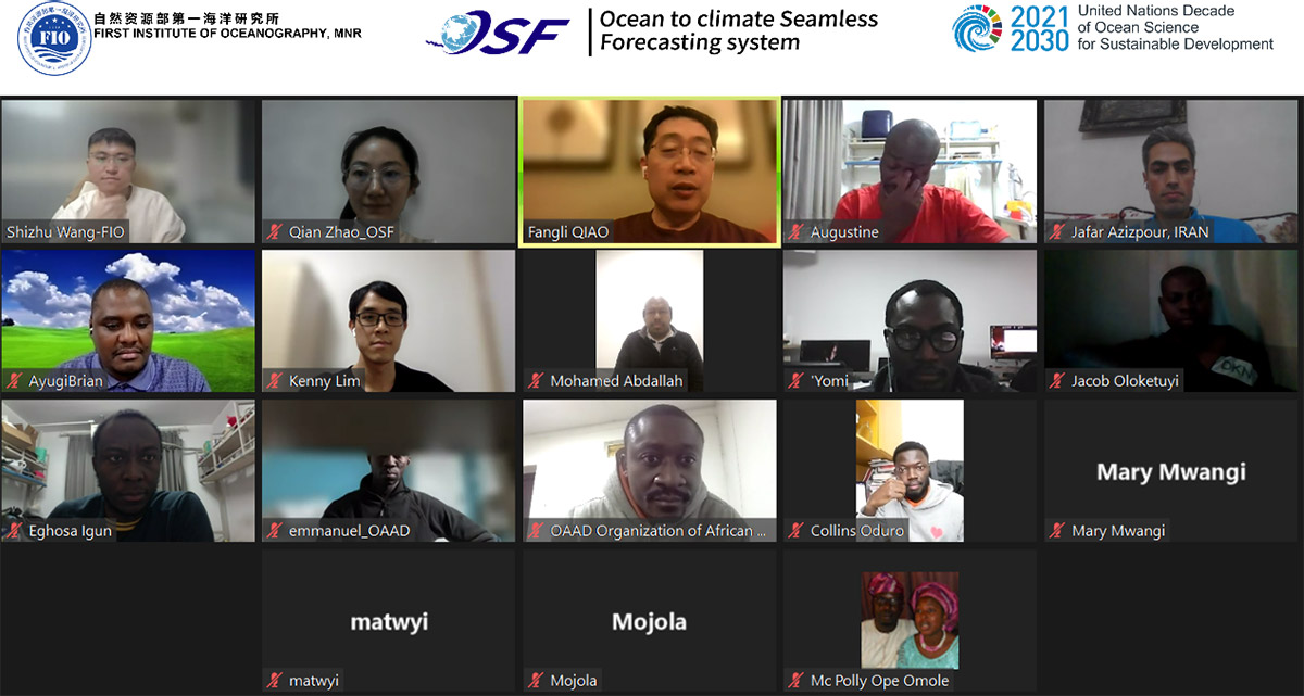 After the presentation, the participants shared their ideas on the urgent needs of African countries and how African research institutes can get involved and contribute to this Programme. Dr Ir. Zacharie SOHOU, vice-Chair of IOCAFRICA and National Focal Point of IOC, Director of Benin Fisheries and Oceanologic Research Institute (IRHOB), put forward their need for collecting in situ ocean observation data. At the same time, OSF’s model can also help improve forecasting capability, which can be used for fishery, costal industry, tourism, etc. Dr Elijah Odii, president of the Organization of African Academic Doctors (OAAD), expressed their strong willingness to collaborate with the OSF in terms of data and idea exchanges and capacity building.