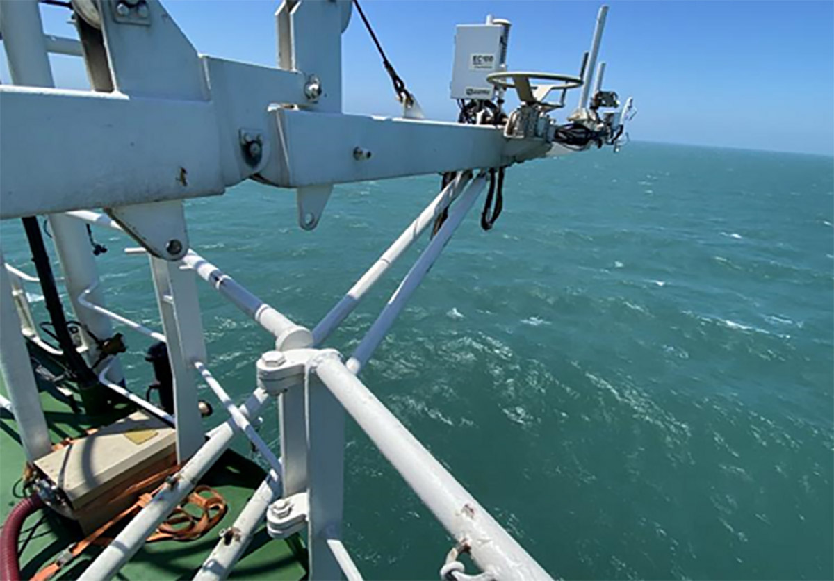 为提升海洋与气候科技界对海洋飞沫重要性的科学认知,2023年7月6-9日,海洋一所派出刘展池参加“中山大学”号暑期科考实习航次,进行了海洋飞沫船载观测实验(图1),对参航年轻学者了进行现场培训,并在实习航次中与中山大学、南京大学等联合组织了海洋飞沫交流会